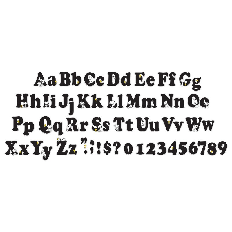 What's Included – Set includes 210 Peanuts-style letters, including uppercase letters, lowercase letters, numerals, punctuation marks, and symbols. Design element does not appear on every letter/number and varies in placement.