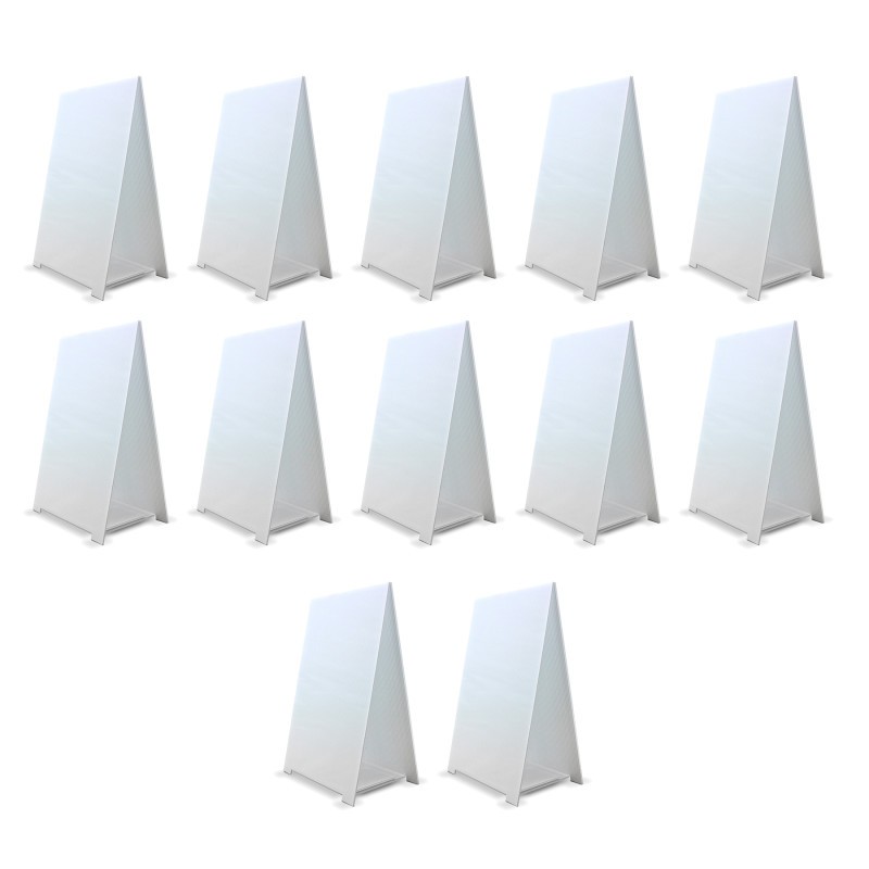 Our versatile tabletop corrugated plastic dry erase easel is the ideal solution for showcasing announcements, menus, and messages with ease. Crafted for durability and convenience, this easel is both sturdy and lightweight, providing a compact display that effortlessly fits onto any desktop setting. Made from 100% recycled and recyclable corrugated plastic, it aligns with eco-friendly values. The thoughtful design makes it easy to transport and the ability to fold flat for efficient storage. With dimensions of 11"H x 17"W x 8"D, this easel strikes the perfect balance between functionality and space-saving necessities. Pack of 12.