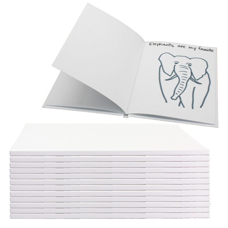 Hardcover Blank Books are great for easy and fun activities. Create your own book, draw pictures, document an event, or even use it as a journal. This is a portrait styled blank book and it comes in a set of 12. These books are in portrait format measuring 8.5" x 11". 14 Sheets/28 Pages on 80# bright white paper.