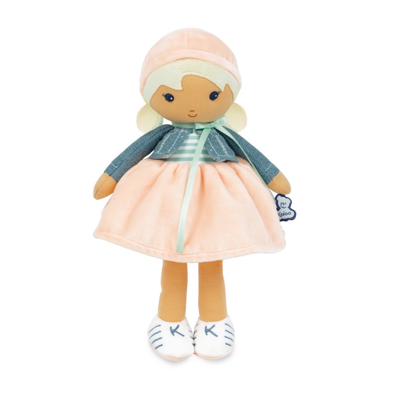 Featuring a trendy look, Chloé measures 12.36 inches and evokes a sense of a modern girl who is at ease with herself. Her matte tone makes her golden hair stand out and her peach- colored skirt produces a relaxed look. You'll love her chicly-styled skirt and cool sneakers! Machine washable.