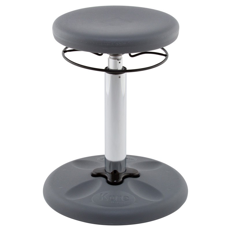 The innovative Kore Design® Kids Adjustable Wobble Chair with it's gently-rounded bottom encourages active sitting and allows one's knees, hips and back to find comfortable and ever-changing positions; continuous movement increases Secondary Focus. Great for older children and young teens, the seating height can be easily adjusted from 16.5" to 24" with the 360 degree Actuator Ring to grow with your child. Suggested for ages 9-14; Grade 4-9; child height 53"-70".