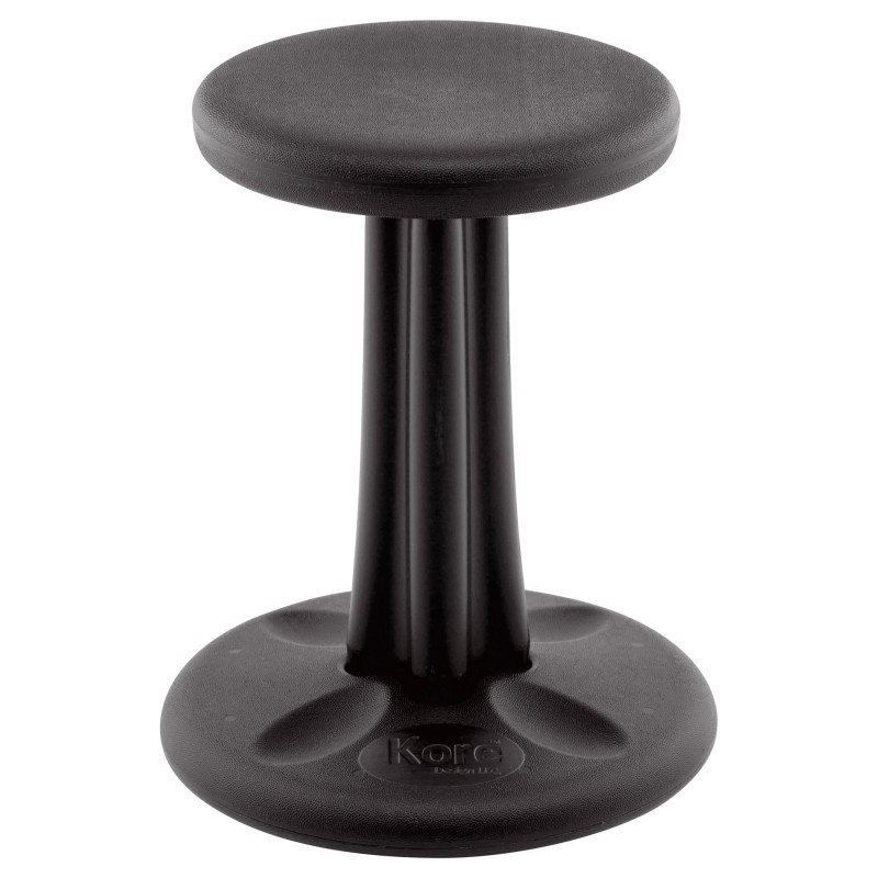 The innovative Kore Design® Kids Junior Wobble Chair with its gently-rounded bottom encourages active sitting and allows one's knees, hips and back to find comfortable and ever-changing positions. Continuous movement increases Secondary Focus – concentrating on the task instead of fixating on sitting still. Active sitting can also help improve posture and prevent pain or stiffness that may result from prolonged sitting. Seat height 16"; suggested for ages 8-9; Grade 3-4; child height 50"-53".