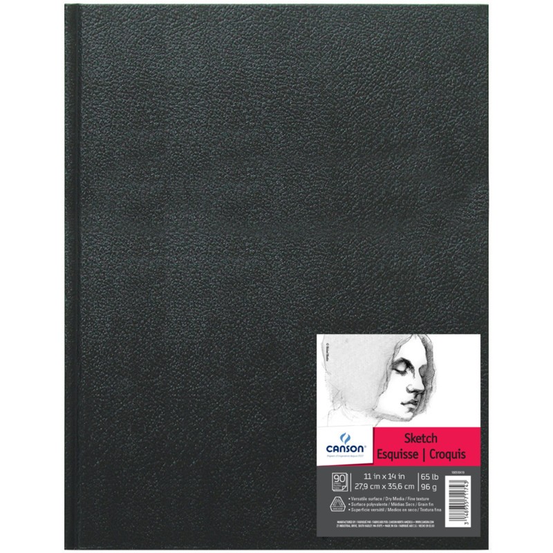 Canson Artist Series Sketch Art Book, Black Cover, Hardbound, 90 Sheet, 11x14 inch, 1 Count