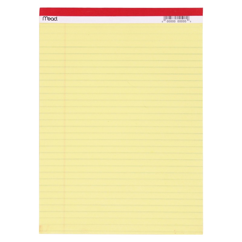 Standard Legal Pad measures 8 1/2" x 11" with perforated paper stapled at the top. The yellow bond paper is ruled 3/8" on both sides. Sturdy back cover is like a mobile desktop, providing additional support wherever you take notes. Each pad includes 50 sheets.