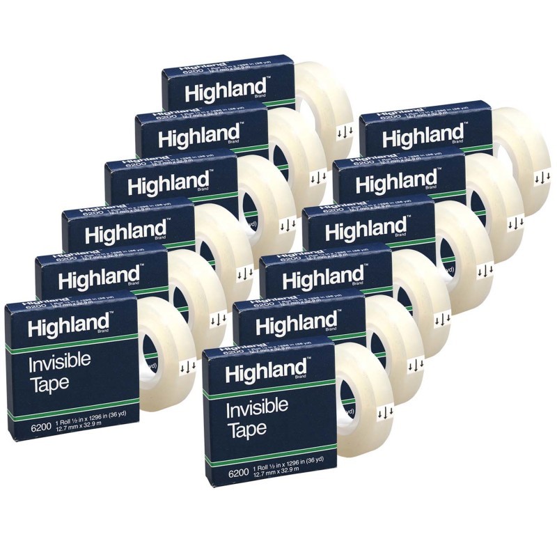 Highland Invisible Tape is an economy tape with a matte finish for basic office use. Each roll measures 0.5" x 1296", with a 1" core. Sold as a pack of 12 rolls.