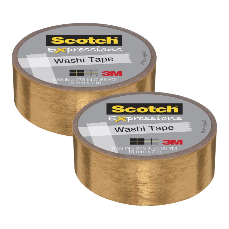 Scotch® Expressions Washi Tape, .59" x 275", Gold Foil, Pack of 2