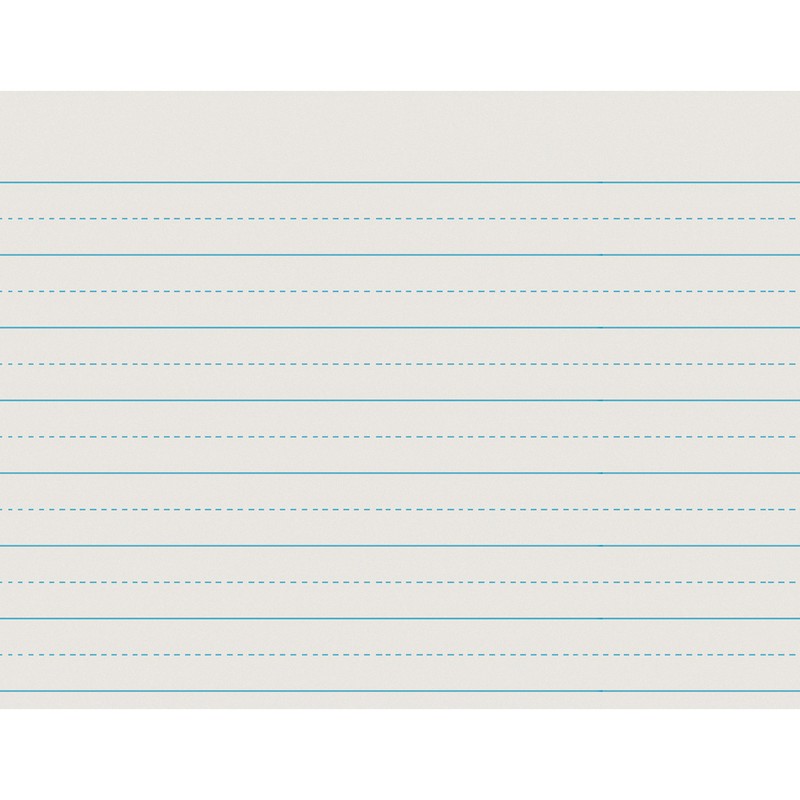 Clean white newsprint paper has light blue ruling on both sides makes great practice paper. Sheets are ruled 1" the long way, and feature a 1/2" dotted midline to serve as a guide for controlled writing. This ruling is recommended for Grade 1. Includes 500 sheets per package. Measures 11" x 8.5".