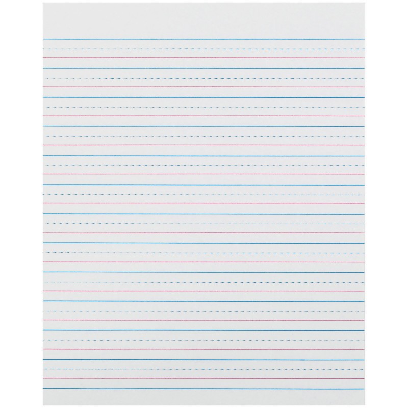 Clean White sulphite paper printed on both sides with a red baseline and a dotted blue midline, making it easy for students to find the headline quickly and easily. It's also great for tracking students' handwriting progress over time, and helps build a solid foundation for students to write legibly and communicate effectively through writing. Ruled 1/2" (short way), 1/4" dotted midline, 1/4" skip space. For Grade 2. Recyclable. Measures 8" x 10.5". Each pack includes 500 sheets.