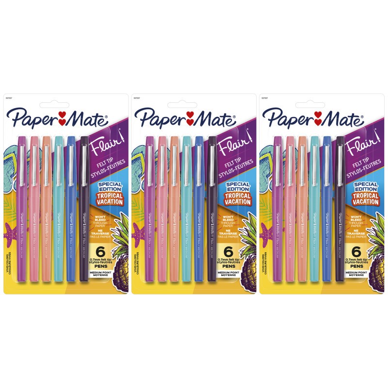 Sold as 3 packs, each pack includes 6 Flair pens in assorted colors