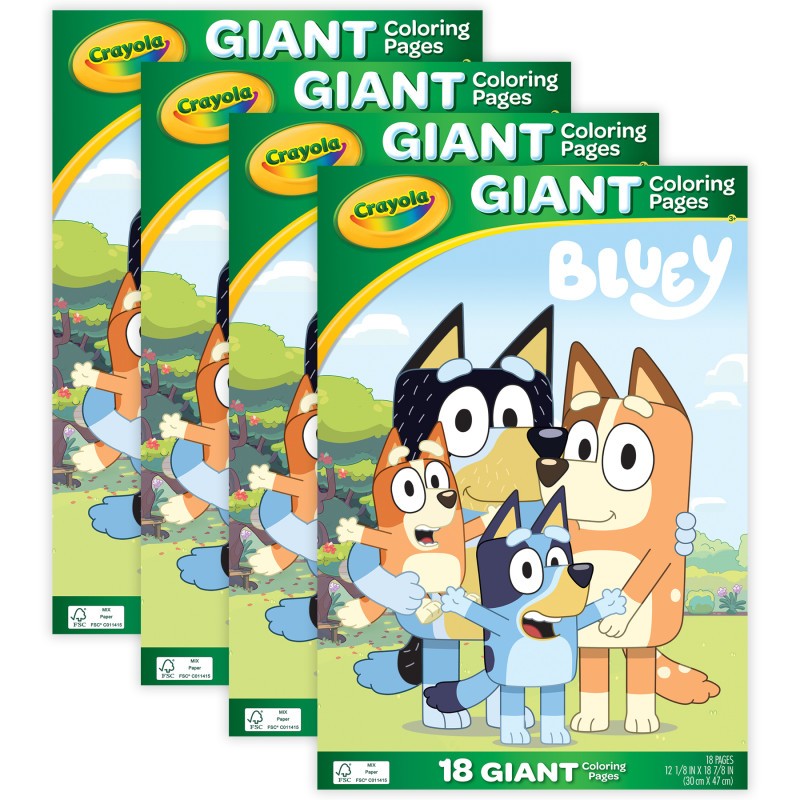 CRAYOLA GIANT COLORING PAGES: Sold as 4 sets for a total of 72 pages, each set features 18 super-sized coloring pages for kids, featuring characters from Bluey!