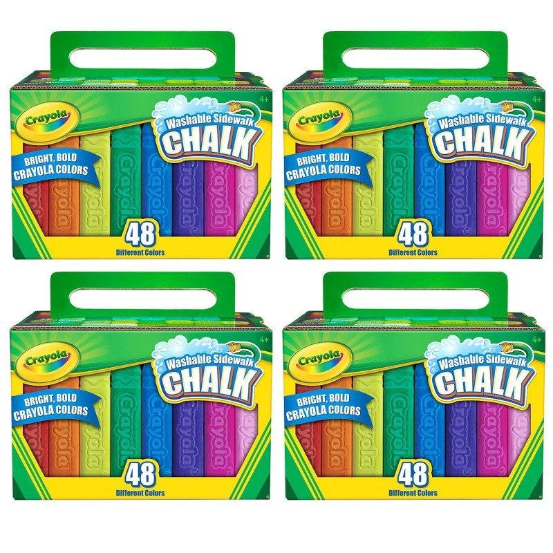 Go big and bold with Crayola Washable Sidewalk Chalk. Ideal for sidewalks and driveways, this set gets kids outside for artistic, imaginative fun. Create big, colorful murals and write large handwritten messages in vibrant shades. Draw brightly hued foundations for traditional chalk games, including hopscotch, tic-tac-toe, and four square. This set includes a diverse range of colors, from classic red, yellow, to the blue hues. These Crayola colors pop against sidewalk and driveway surfaces. A safe and convenient choice for kids, this chalk has a special anti-roll shape to prevent it from rolling down driveways or other inclined surfaces. Kids can keep their chalk close at hand as they draw fine lines and broad strokes. Crayola Washable Sidewalk Chalk washes clean from sidewalks and driveways. For fast and easy cleanup, use a water hose to spray away the color. Crayola art supplies and activities help children express, create, and connect through colorful play. Each box includes 24 Sidewalk Chalk sticks in exclusive Crayola crayon colors. Sold as 4 boxes for a total of 192 sticks of chalk.