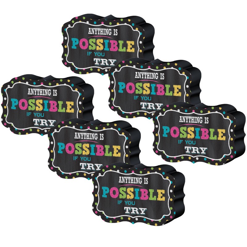 Sticks to your magnetic whiteboard. Embossed lettering makes the text pop! Coordinate with other super hero themed items. Each eraser is approximately 4" x 2.5" x 0.875". Sold as a pack of 6 erasers.