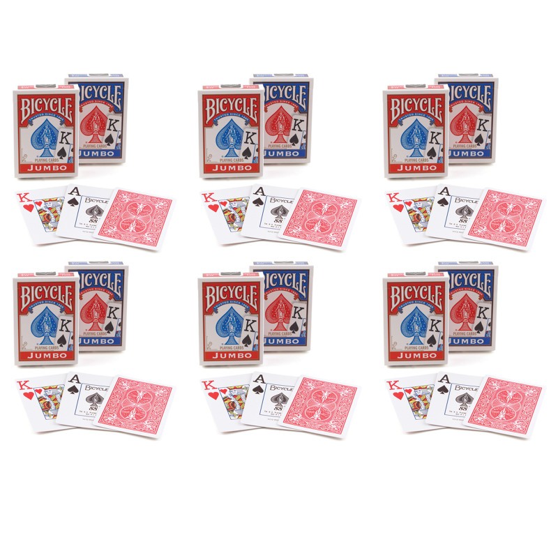 Since 1885, the Bicycle brand has been manufactured by the United States Playing Card Company. The typical Bicycle deck (poker-standard) is a standard deck of playing cards consisting of 52 traditional suited playing cards, two jokers, and two additional ad cards. As with most decks, the first standard card of the deck is the uniquely stylized ace of spades: Goddess of Liberty. The Ace of Spades is a Bicycle trademark. Pack of 6 decks of cards.
