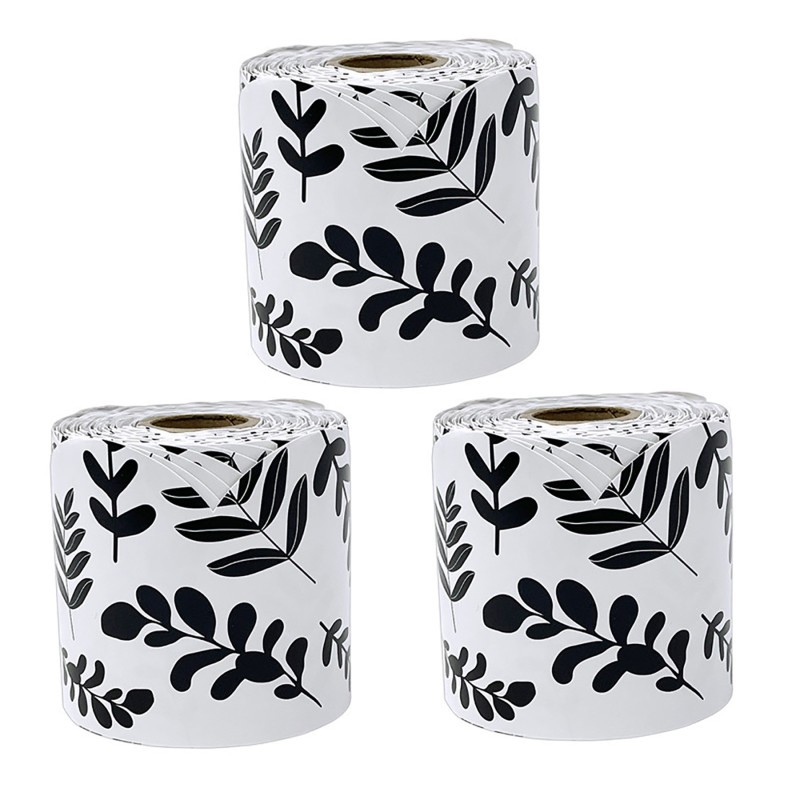 Add the perfect finishing touches to your modern farmhouse décor using Carson Dellosa's Farmhouse Black and White Leaves Bulletin Board Borders. The roll of scalloped, white and black border features a classically chic leafy design and measures 65 feet x 3 inches—perfect for bulletin boards, white boards, cork boards, and other modern farmhouse classroom décor needs. Cut and layer the white and black bulletin board border to add dimension to any display with ease. Add the white and black bulletin board borders to locker and desk décor, and other modern farmhouse classroom décor or office décor for year-round charm that students will love. Sold as a pack of 3 rolls.