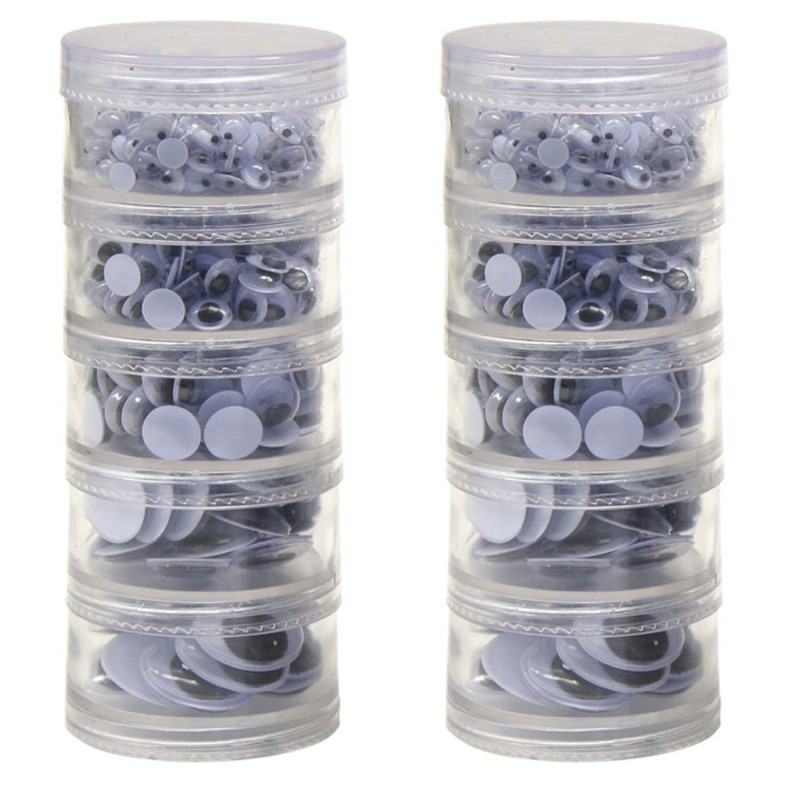 Bring projects to life with Creativity Street Wiggle Eyes! Great for storing and keeping these Wiggle Eyes organized. The screw-bottom containers feature different selections of our most popular Wiggle Eyes. This assortment of round and oval Black Wiggle Eyes Sizes includes: Round - 5 mm x 288 pieces, 7 mm x 44 pieces, 10 mm x 72 pieces, 15 mm x 36 pieces. Oval - 20 mm x 20 pieces. Sold as 2 packs for a total of 1120 Wiggle Eyes.