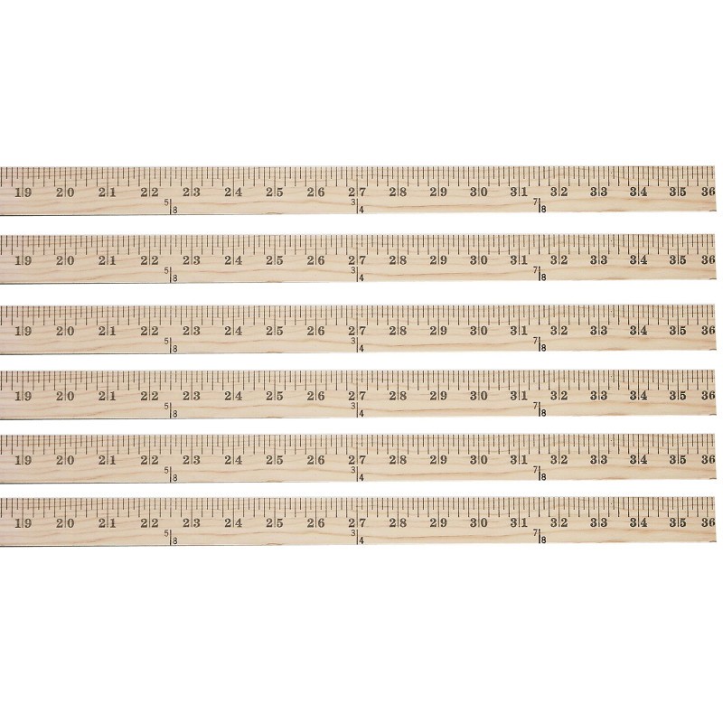 Westcott Drafting & Drawing Tools are some of the finest products of their kind for students and professionals. Our commitment to meticulous quality and cutting edge innovation in measurement and art materials has earned an unparalleled reputation. Made of wood with a multiple-coat clear lacquer finish, this yardstick is 1 1/8 inches wide. Scaled on both sides, it has 1/8 inches division and fractions of a yard. Sold as a pack of 6.
