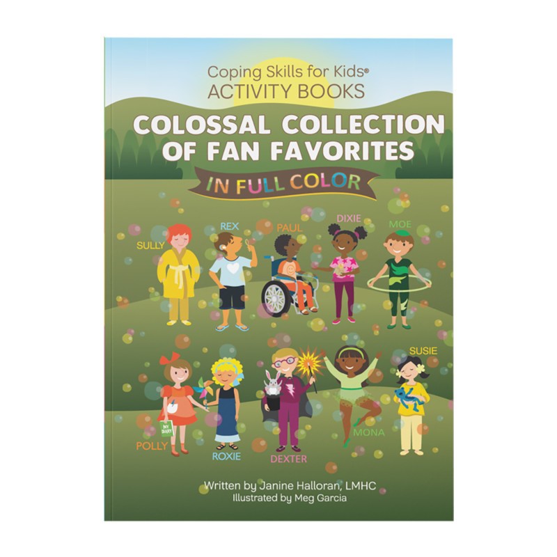 The Coping Skills for Kids Activity Books: Colossal Collection offers a vibrant array of coping strategies across five distinct styles tailored to suit different personalities and situations. From relaxation techniques like deep breathing and mindfulness to energetic movements such as walking or dancing, there's something for everyone. Distraction activities like games and puzzles provide enjoyable breaks for the mind, while sensory techniques like wrapping in a blanket or feeling different textures offer grounding sensations. For those who prefer processing thoughts and feelings, problem-solving techniques and positive focus exercises are included. Each skill is introduced through engaging activities like coloring, drawing, and writing, allowing for both practice and reflection. The Colossal Collection also features valuable bonuses including a double-sided feelings bookmark for tracking emotional progress, a "Five Faves" page to highlight preferred coping skills, and "On the Go Go To's" sections for listing strategies best suited for various environments. With its comprehensive approach and interactive elements, this book empowers children to explore and develop effective coping mechanisms for life's challenges. Styles covered include: Relaxation, Movemen, Distraction, Sensory, and Processing. Supports SEL.