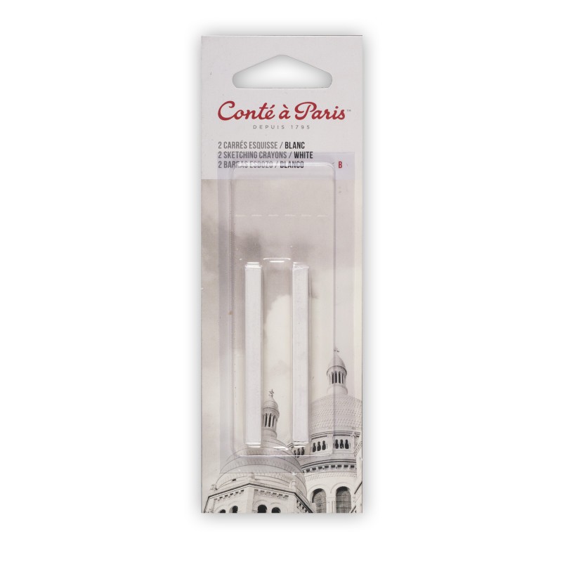 Bring soft, luminous highlights to your artwork with Conté à Paris Carrés Esquisse Sketching Pastel Crayons, White B, Pack of 2. These square sketching crayons feature a slightly softer composition than Conté pencils, producing velvety marks and smooth tonal transitions. The White B grade offers gentle blending capabilities ideal for light accents, negative drawing, and sketching on toned or dark papers. Perfect for figure drawing, studies, and expressive mixed-media work, these crayons pair beautifully with Red, Bistre, and Black Conté tones. The B grade provides soft laydown for subtle shading and delicate gradations in fine art applications.