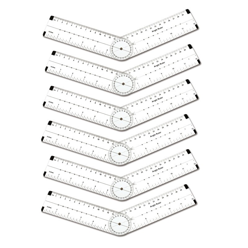 Perfect for measuring and constructing all types of angles, along with degrees and lengths of sides, this adjustable transparent ruler is marked in inches and centimeters and has a 0-360 degree scale. Sold as a pack of 6 rulers.